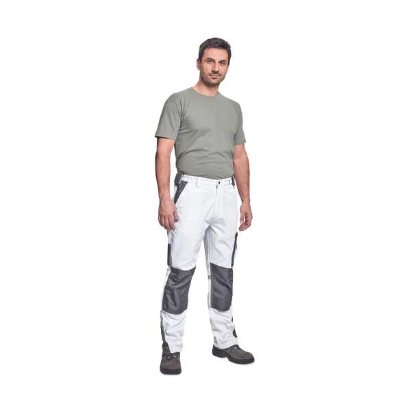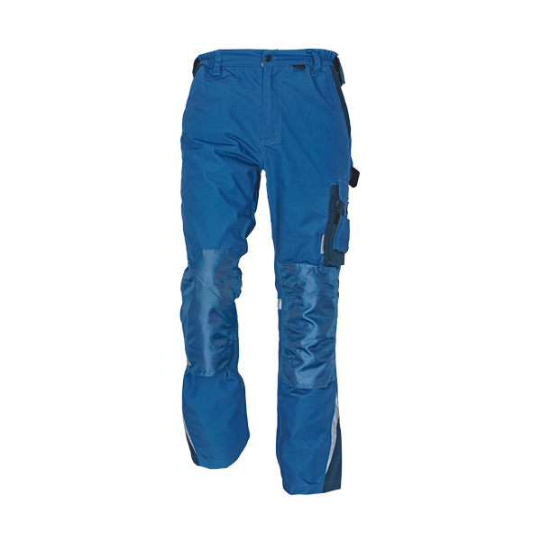men's working pants with elastic waist, full metal zip and poppers, 2 front pockets, 1 multifunctional thigh pocket, 2 back pockets, tool loop, 3M reflective elements, CORDURA reinforcement in stressed parts and knees pockets for knee pads insertion