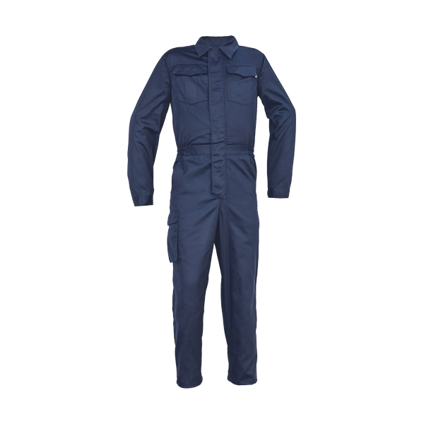 men's working lightweight overall with zipper covered by placket; 2 side pockets, 1 coins pocket; 1 multifunctional thigh pocket, 2 back pockets; 2 chest flap pockets; elastic parts on waist side; extendable length of legs;