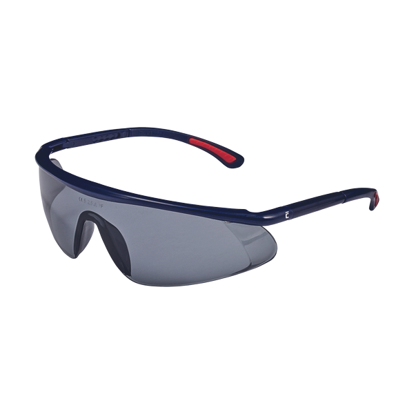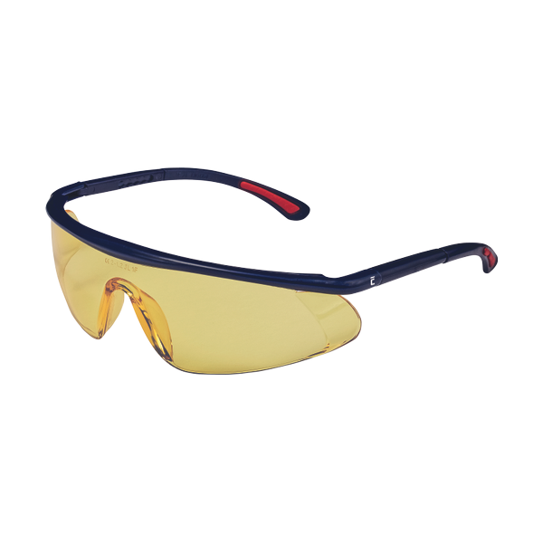 Sporty eyewear with polycarbonate class 1F lenses according to EN 166. The lenses feature anti-fog and anti-scratch protection . Resistant to impact with low energy flying particles. Adjustable temple length. The yellow lenses protect against UV radiation according to EN 170. Smoke lenses with a sunglare filter according to EN 172