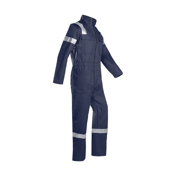 men's multifunctional coverall with ARC protection; flame-retardant, anti-static; excellent protection against heat and metal splashes; zip closure under flap with concealed press studs; elastic waist; 6 different outside pockets; 1 inside pocket; double-stitched reflective FR strips flame-retardant; sleeves can be narrowed using press studs; knee pockets for knee pads insertion.