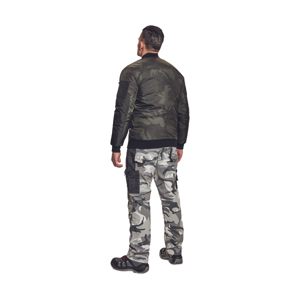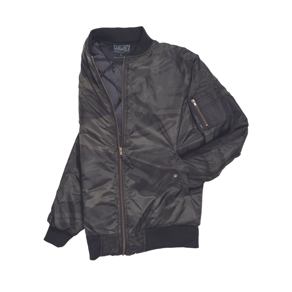 men's insulated pilot jacket with short stand up collar and zipper closure; 2 side pockets, 1 inner chest pocket; elastic knitted sleeve welts; bottom waist edge and collar.