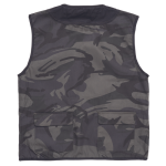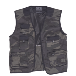 men's vest made from light weight twill fabric; partly lined by nylon mesh; 11 pockets from it 2 in back hip part and 1 phone pocket; zipper fastening.