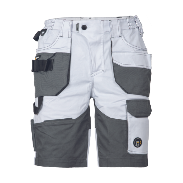 pánské pracovní šortky s elastickým pasem; elastická inovativní tkanina TRIFIBETEX®; trvanlivé trojité šití nohou a rozkroku; prostorné multifunkční přední kapsy s popruhem na nářadí; reflexní detaily tón v tónu.