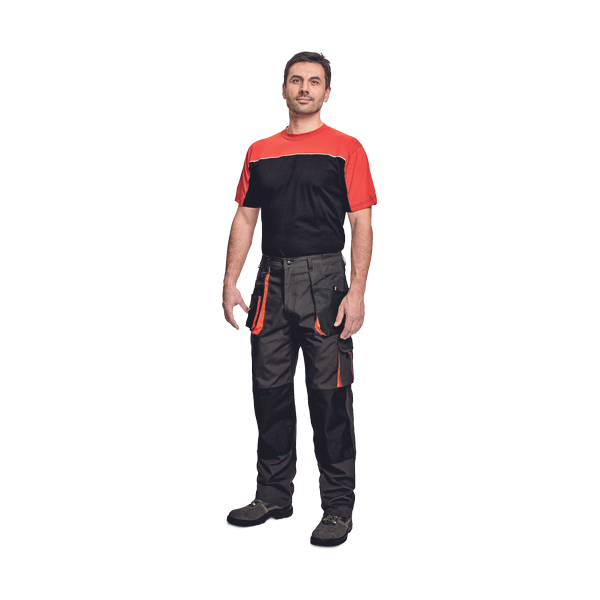 high quality two-colour men's T-shirt; ribbed round neck with 5% elastan share.
