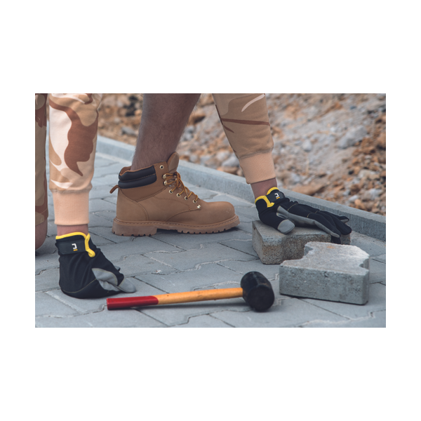 Sewn gloves, palm made from artificial suede, back made from synthetic knit with Spandex® and joint protectors. Velcro cuff and palm lining.