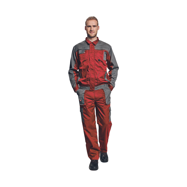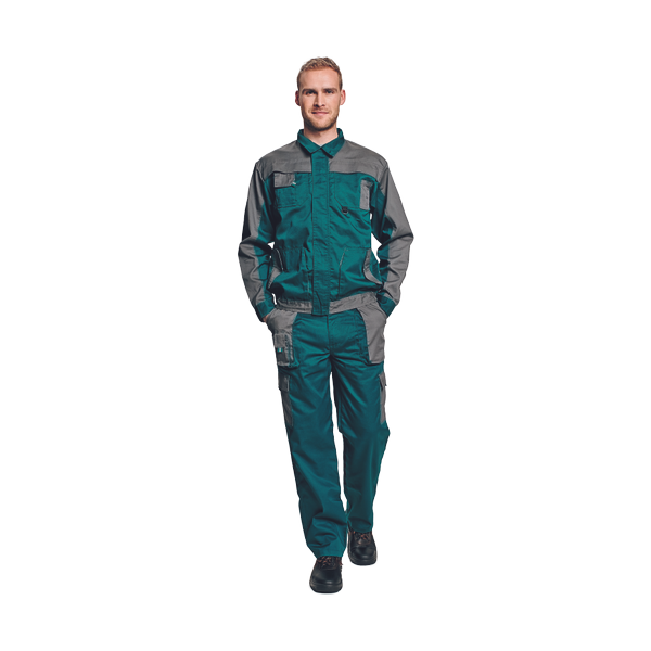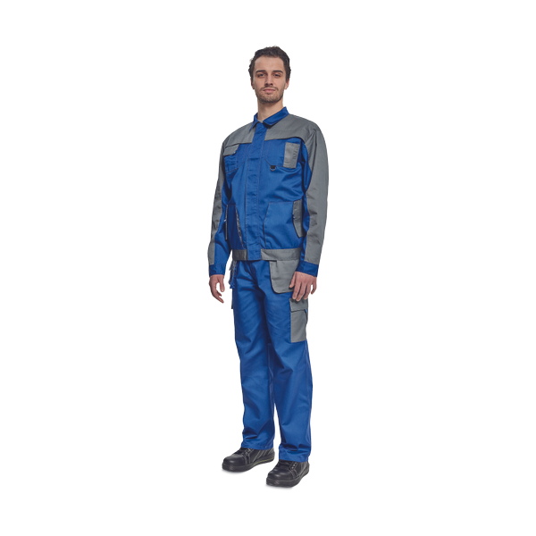 pánská pracovní bunda se zapínáním na zip s přehozem na kapsy a elastickým pasem; 2 přední kapsy s klopami, 2 multifunkční náprsní kapsy