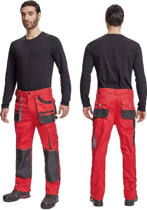 pánské pracovní bavlněné kalhoty; 6 funkčních kapes; polyesterové Oxford vyztužené kolenní části s kapsami pro vložení chrániče kolen; prodloužitelná délka nohou.