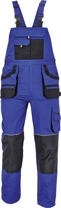 pánské pracovní bavlněné kalhotové kalhoty; 7 funkčních kapes; zapínání v pase na obou bočních knoflících; polyesterové kolenní části vyztužené Oxfordem s kapsami pro vložení chráničů kolen; prodloužitelná délka nohou.