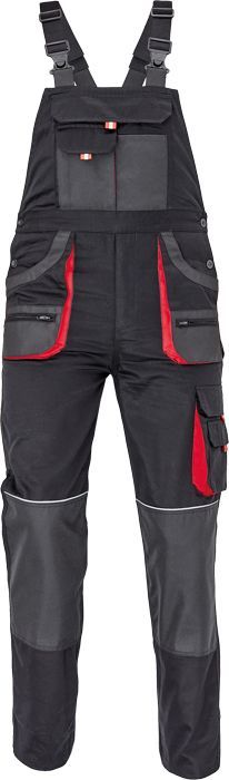pánské pracovní bavlněné kalhotové kalhoty; 7 funkčních kapes; zapínání v pase na obou bočních knoflících; polyesterové kolenní části vyztužené Oxfordem s kapsami pro vložení chráničů kolen; prodloužitelná délka nohou.