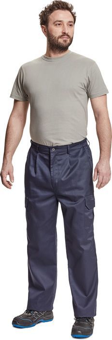 pánské pracovní kalhoty s elastickým pasem; 2 boční kapsy; 2 kapsy na stehnech se zapínáním na suchý zip; 1 zadní kapsa se zapínáním na suchý zip; nastavitelná délka nohou.