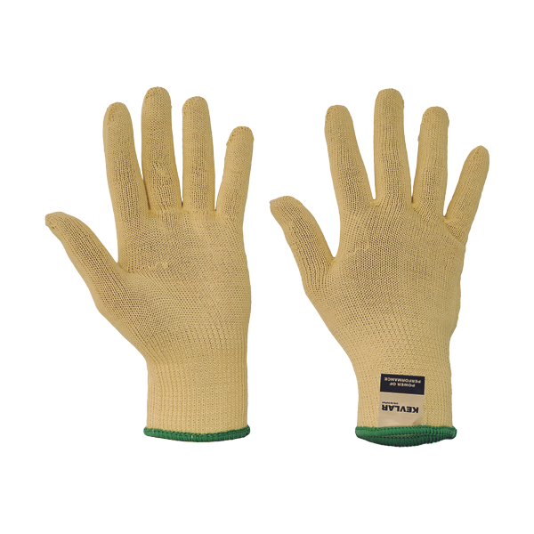 Pletené bezešvé kevlarové rukavice ze středně silného trikotu.