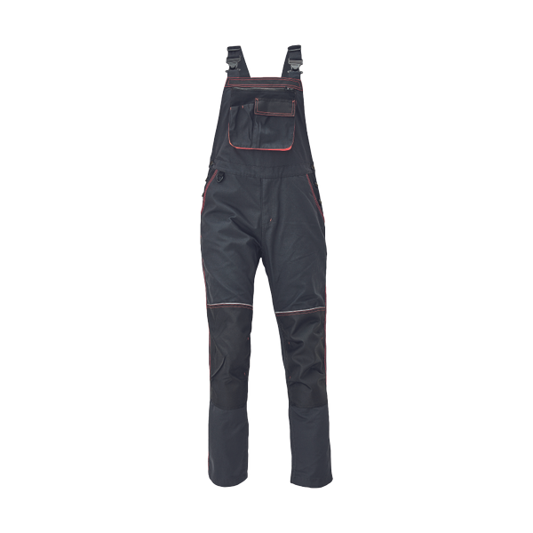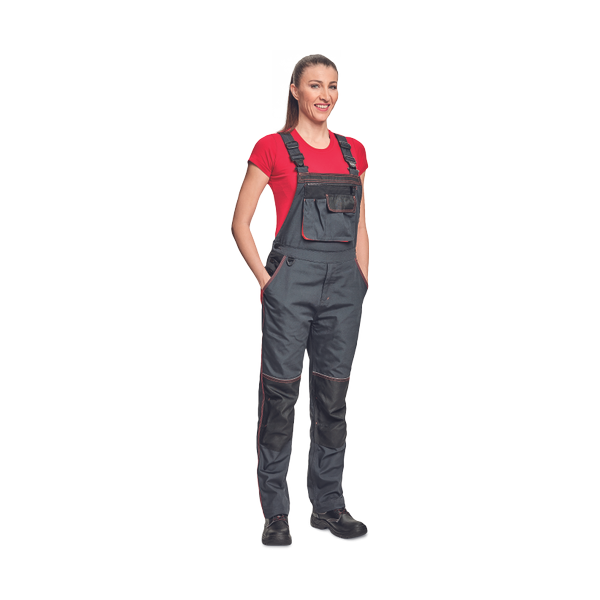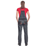 women's working bib pants with elastic braces and waist; Oxford 600D reinforced knee parts for knee pads insertion; extendable length of legs of 5 cm; decorative stitching and contrast details in HI-VIS colour.
