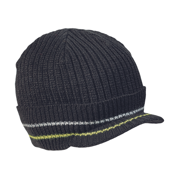 winter knitted cap with visor; 2 stripes in contrast colour matching with Knoxfield collection.