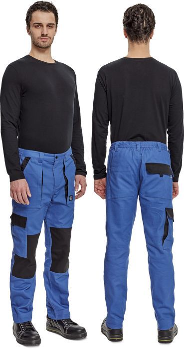 pánské pracovní kalhoty s elastickým pasem; 2 boční kapsy, 1 stehenní kapsa, 2 zadní kapsy; zesílení kolenních částí; prodlužovací délka nohavic.