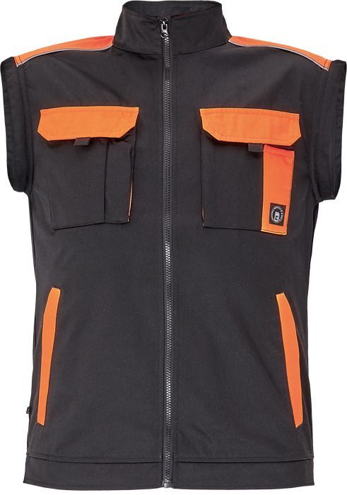 pánská pracovní bunda se zapínáním na zip; odnímatelné rukávy; 2 přední kapsy, 2 kapsy na hrudi; zesílení v namáhaných částech ramen a loktů; reflexní potrubí; elastické žebrované manžety a spodní lem v pase.