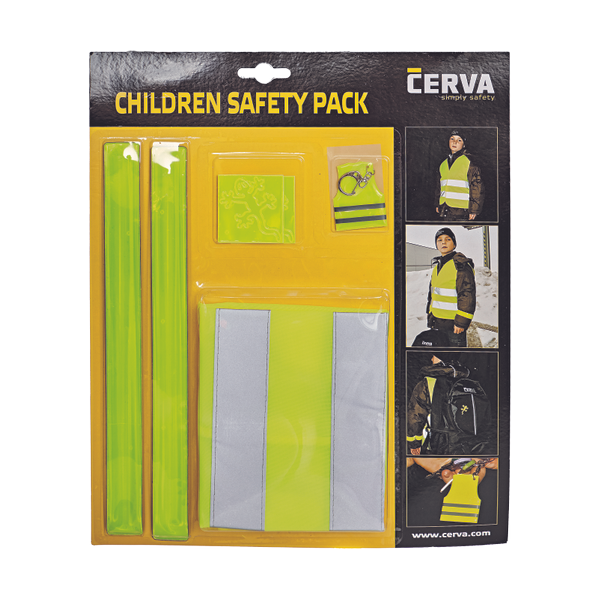 warning child set icludes warning vest 2 warning tapes, warning sticker, warning key ring; warning garment set is suitable for children over 3 years (120-140 cm tall) to wear over upper clothes for visual alert of user presence during any day and night light conditions; child vest fulfilling standard EN 1150 (visible clothing for non-professional use).
