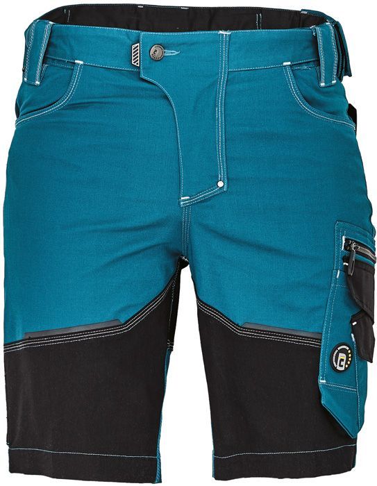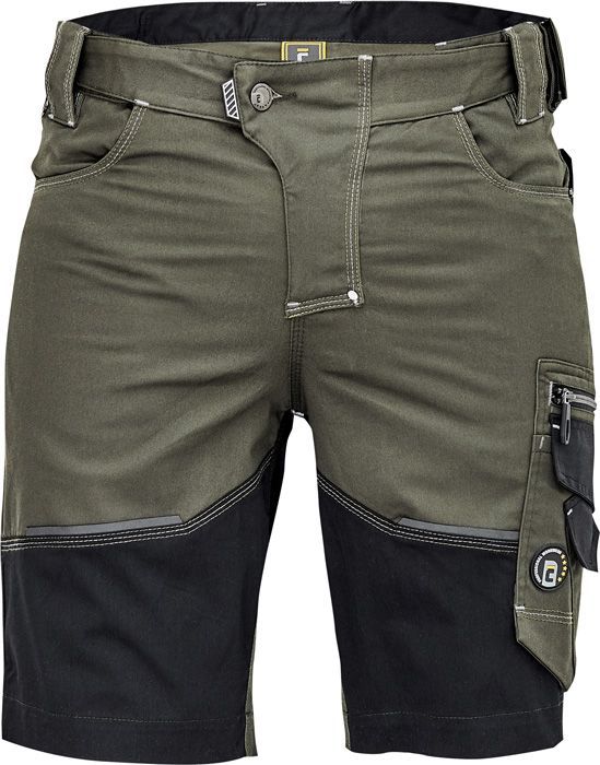 pánské pracovní šortky s elastickým pasem; elastický inovativní materiál TRIFIBETEX®; trvanlivé trojité šití nohou a rozkroku; prostorné multifunkční přední kapsy s popruhy na nářadí; reflexní detaily tón v tónu.