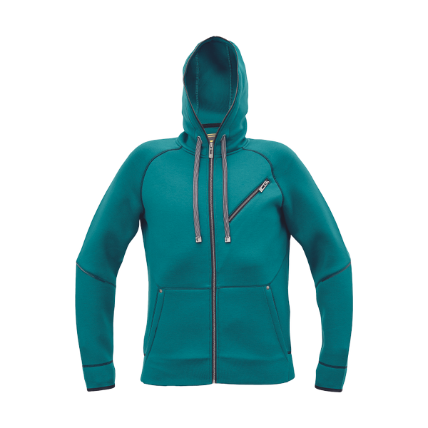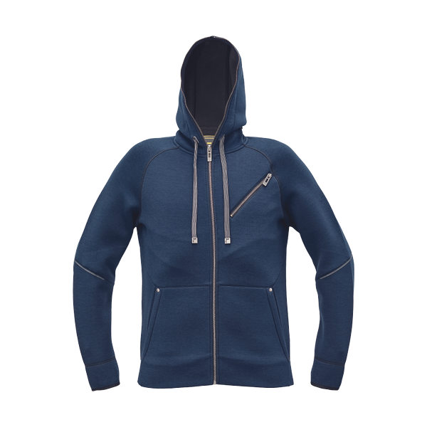 men's hoodie with full zipper closure; zipper closure is prolonged up to hood peak; hood girth adjustment with inner lace; 2 deep front pockets; 1 chest pocket with zipper closure; reflective details tone in tone.