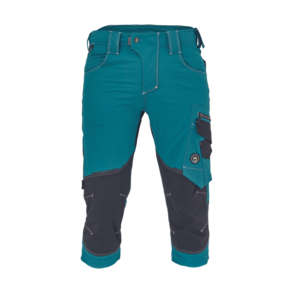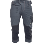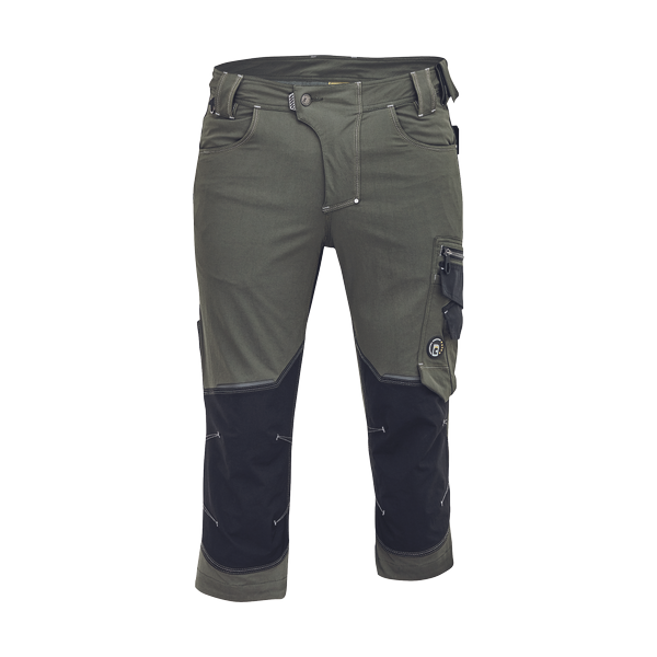 men's working 3/4 pants with elastic waist; elastic inovative TRIFIBETEX PRO® material; durable tripple stitching of legs and crotch; CORDURA reinforcements at knee parts; spacious multifunctional front pockets with tool straps; reflective details tone in tone.