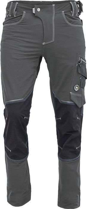 pánské pracovní kalhoty s elastickým pasem; elastický inovativní materiál TRIFIBETEX PRO®; trvanlivé trojité šití nohou a rozkroku; Zesílení CORDURA v kolenních partiích; prostorné multifunkční přední kapsy s popruhy na nářadí; reflexní detaily tón v tónu, prodloužitelná délka nohavic.