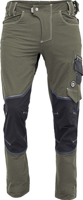 pánské pracovní kalhoty s elastickým pasem; elastický inovativní materiál TRIFIBETEX PRO®; trvanlivé trojité šití nohou a rozkroku; Zesílení CORDURA v kolenních partiích; prostorné multifunkční přední kapsy s popruhy na nářadí; reflexní detaily tón v tónu, prodloužitelná délka nohavic.