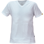 ESD T-shirt with short sleeves and V-neck shape from cotton single jersey knit with antistatic fibre; ensuring protection of electronic devices against electrostatic effects; universal cut.