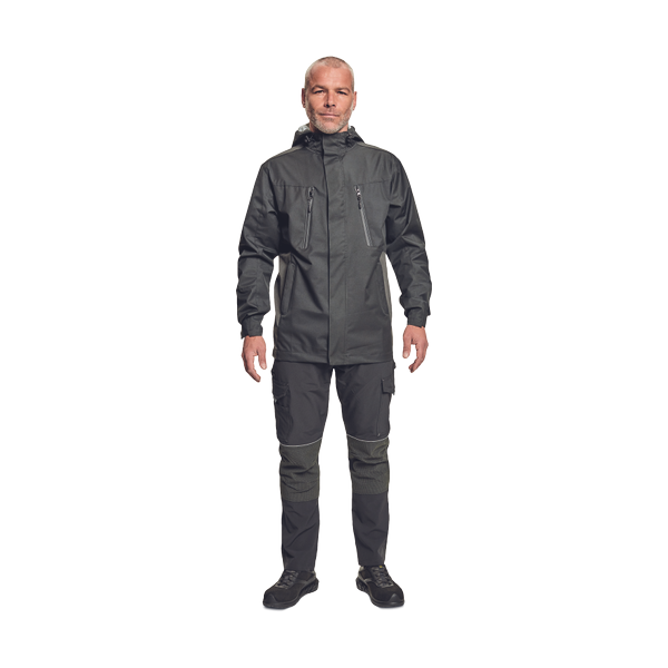 pánská lehká outdoorová bunda s kapucí; vodotěsný a prodyšný; 4 kapsy na zip; nastavitelné rukávy na suchý zip; nastavitelná kapuce stahovací šňůrkou; reflexní potrubí v tónu.