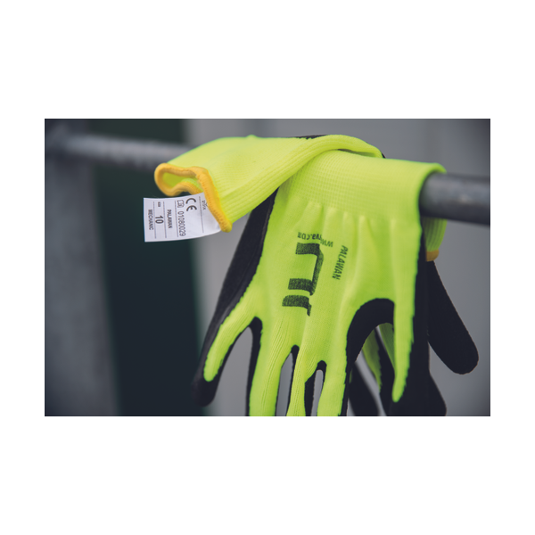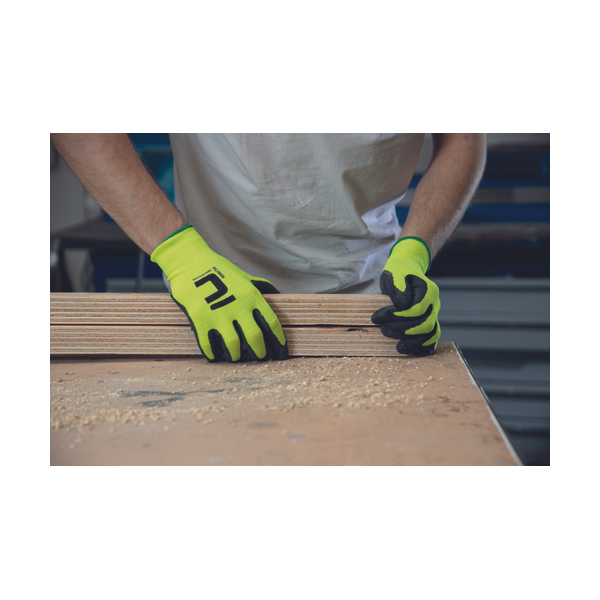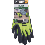 Seamless protective gloves knitted from synthetic yarns with a latex coating on the palms and fingers