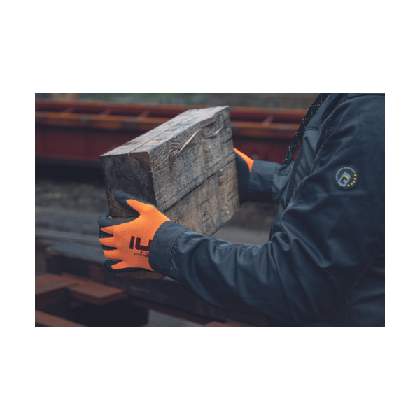 Insulated seamless protective gloves knitted from synthetic yarns with a microporous and breathable latex layer in the palms and on the fingers, and flexible knitted ribbing on the wrists.