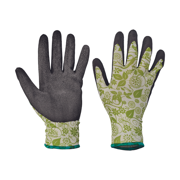 Seamless nylon gloves with elastic cuff, dipped in foam latex.