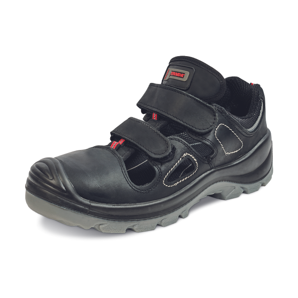 Safety sandals with non-metallic toe cap, injected oil resistant PU/TPU sole, ABSORBER® lining with treatment against fungus and bacteria proliferating and made of high quality grain leather and textile upper. Reinforced toe for added durability of shoes. Shoes without metal components metal free. Reflective elements for increased visibility pasive safety elements.