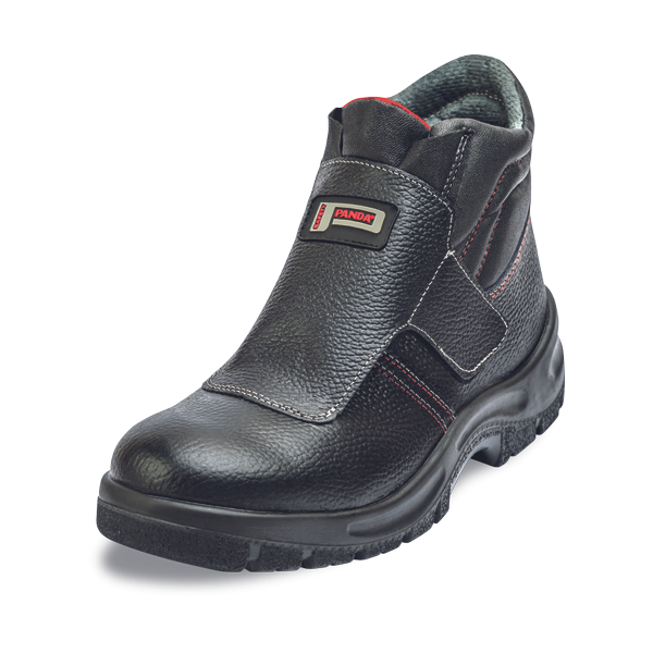 Safety ankle shoes with metal toe cap and puncture resistant insole, antistatic, antislip, oil resistant PU/PU sole, energy absorption in heel, upper made from leather. Velcro strap closure.