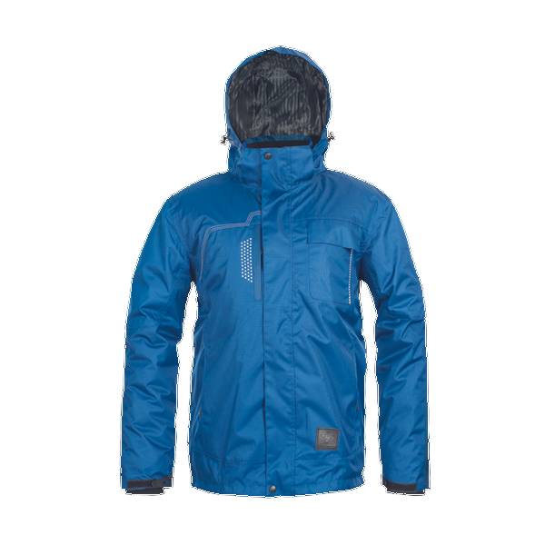 Pánská zimní bunda moderního střihu; skrytý zip s druky uprostřed vpředu; Napoleonská kapsa se skrytým zipem na pravé straně s otvorem pro sluchátka; našívaná kapsa s klopou na levé straně; výztuha z Cordury na ramenou a také na loktech; otvor na rukávech se suchým zipem pro nastavení střihu; kontrastní šev ve světle šedé barvě; přerušované signální lemování a signální nášivka pro bezpečnost a efekt; vnitřní kapsy (včetně kapsy na mobil); kapuce na zip; prošívaná podšívka na zip s kapsami (včetně kapsy na mobil).