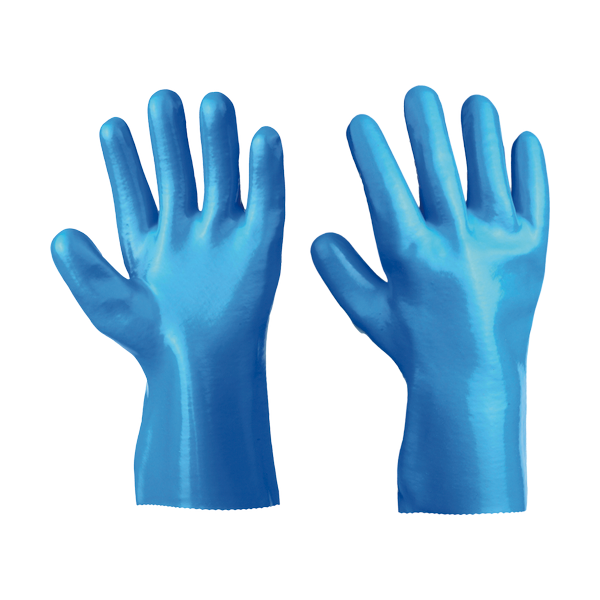 Sewn cotton interlock dipped in PVC with nitril, protection against mechanical and chemical damage, sizes length 27cm=7 - 10.