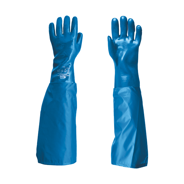 Sewn cotton interlock dipped in PVC with nitril, protection against mechanical and chemical damage, PVC sleeve 65 cm.