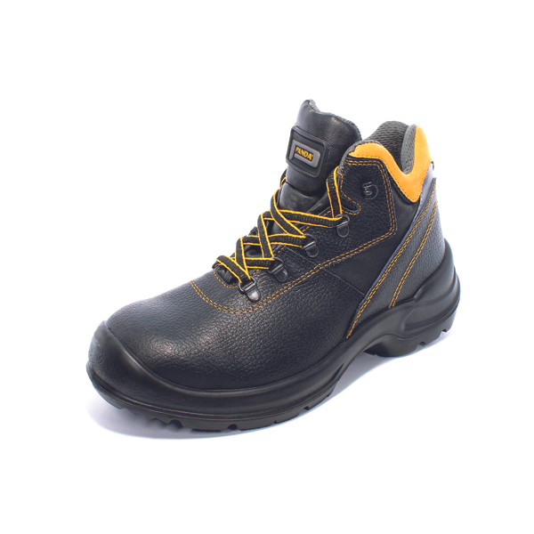 Safety boots with steel puncture resistant insole and toe cap, antistatic, antislip, acid and oil resistant PU/PU sole, energy absorption in heel, water proof breathable leather upper and reflective components for increased visibility.