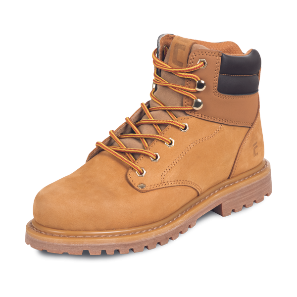 Work ankle shoes without a steel toe cap, antistatic, antislip, oil resistant rubber sole, energy absorption in heel, waterproof breathable nubuck leather upper.