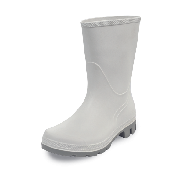 White: Vegetable and animal fat impact resistant PVC and nitrile low bottes with deep profile sole. Height 28cm.
