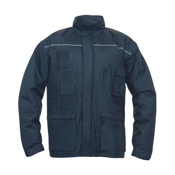 men's insulated winter jacket with detachable sleeves, saparate warn insulated vest; water resistant fabric; 2 side pockets, smaller chest pockets; adjustable sleeves hem by velcro; reflective details.