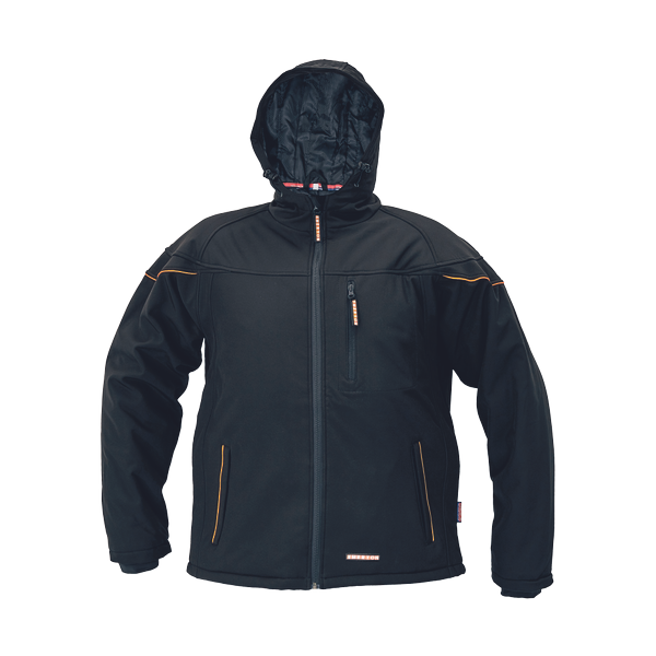 winter stylish softshell jacket with hood and zipper closure; wind and water resistant; breathable TPU membrane; inner "snow belt" with press stud fastening; underarm ventilation; elastic inner cuffs; 2 front zipper pockets, 1 chest zipper pocket.