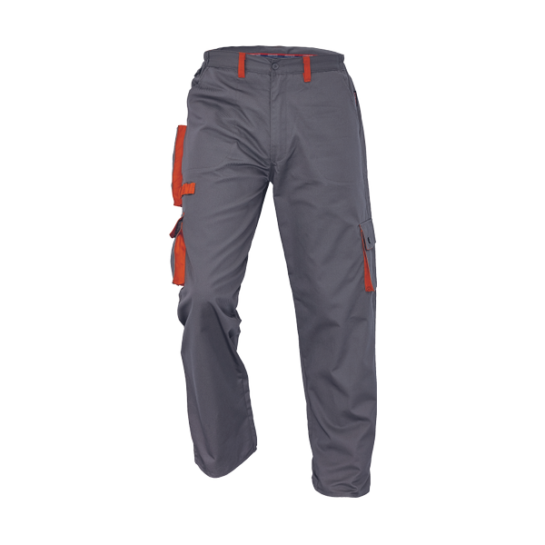 comfortable cut men's workwear pants, elastic waist; 6 functional pockets; adjustable bottom leg width with velcro tape.