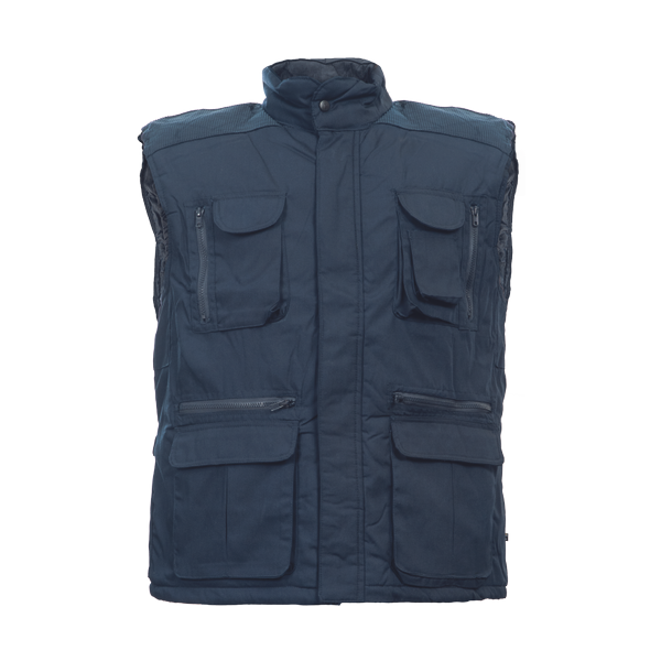 thermoinsulated men's winter vest; zipper closure with placket cover; 2 big front multifunctional pockets; 2 chest multifunctional pockets; draw-cord at the waist.