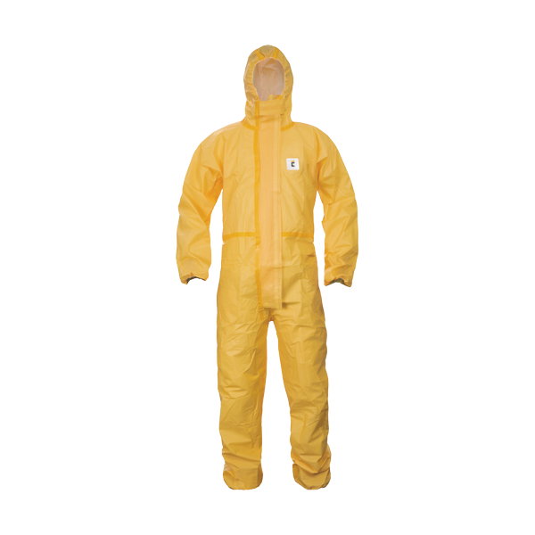 protective antistatic overall with a hood also with protection against dangerous microorganism; impermeable protective layer, it is made of 100% polypropylene + polyethylene coating; sealed seams, self-adhesive zipper flap and elastic wrists and legs; thumb loops in the cuff, which ensure the perfect fit of the sleeves; for protective clothing against liquid chemicals belongs to CE III category; for protective clothing against liquid aerosols to type 4B category; for protective clothing against solid particles and aerosols to type 5B category; for protective clothing against limited splash-tough to type 6B category; for protective clothing against particulate radioactive contamination belongs to Class 2.