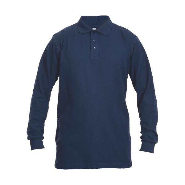 men's poloshirt with long sleeves; 3 buttons placket; flat knit collar and sleeve hem.
