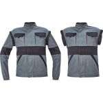 men´s working jacket with zipper closure and placket cover; detachable sleeves; 2 front pockets, 2 chest pockets; reinforcement in stressed parts of shoulders and elbows; elastic cuffs and bottom waist hem.