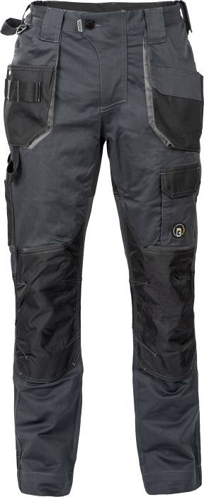 lady's working pants with elastic waist; elastic inovative fabric TRIFIBETEX; durable tripple stitching of legs and crotch; Oxford 600D reinforced knee parts with input for knee pads; spacious multifunctional front pockets with tool strap; reflective details; extendable length of legs.