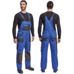 men's working cotton bib pants; 7 functional pocktes; both side button waist closure; polyester Oxford reinforced knee parts with pockets for knee protectors insertion; extendable lenght of legs.