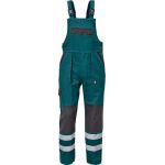men´s working bib pants with elastic waist; wide braces with plastic buckles; 2 side pockets, 1 thigh pocket; 1 big chest pocket, 2 back pockets; reflective stripes on bottom leg parts; knee parts reinforcement.