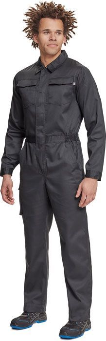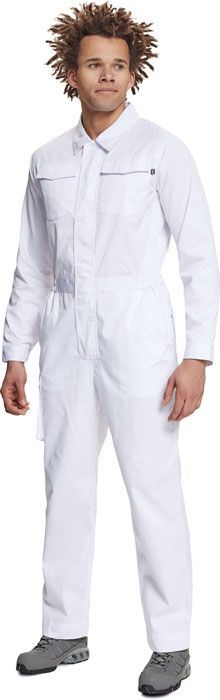 men's working lightweight overall with zipper covered by placket; 2 side pockets, 1 coins pocket; 1 multifunctional thigh pocket, 2 back pockets; 2 chest flap pockets; elastic parts on waist side; extendable length of legs; Note: colours 80, 20, 50, 16, 60 are only to order after contact our PPE consultant.