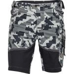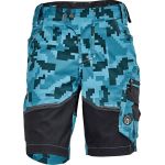 men's working shorts with elastic waist; elastic inovative TRIFIBETEX® material with trendy camou print; durable tripple stitching of legs and crotch; spacious multifunctional front pockets with tool straps; reflective details tone in tone.